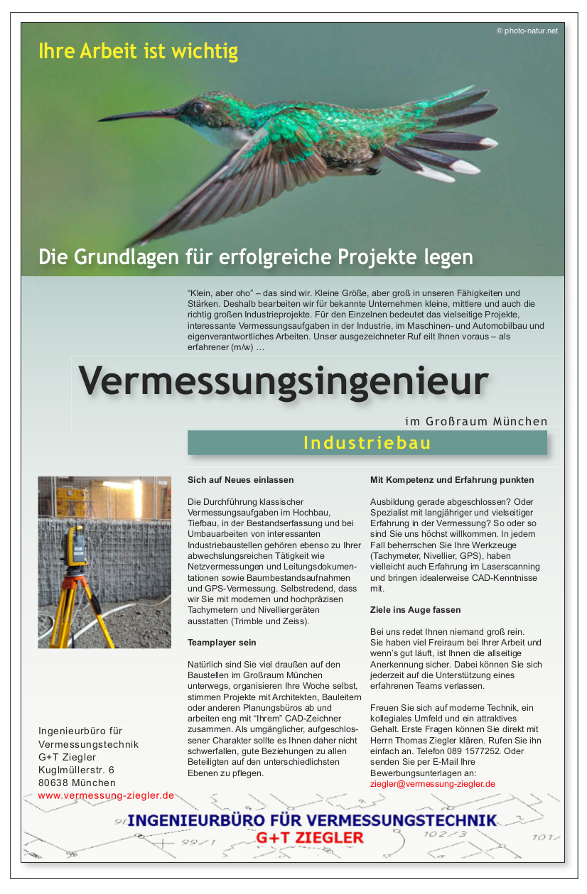 Aktuell Oktober 2017: Stellenanzeige Vermessungsingenieur München